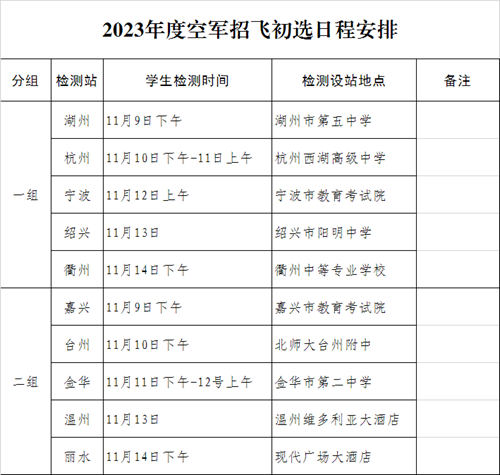 根据2023年度空军招飞工作安排,11月9日至11月14日,空军招飞局南京选拔中心将派初选组赴各地市,对报考空军飞行学员的学生进行检测。