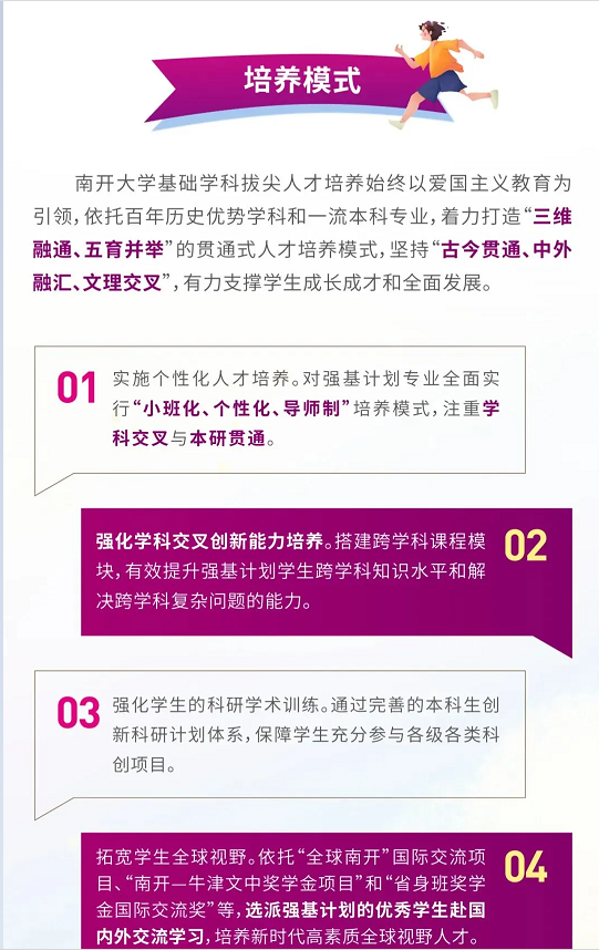 截至目前,南开大学首届强基学生参加国家级、天津市级等各级大学生科研创新计划80余项,省部级以上获奖近三十项,在中国国际“互联网+”大学生创新创业大赛、全国大学生数学竞赛、美国大学生数学建模竞赛、全国大学生生命科学竞赛、全国大学生物理实验竞赛、中国高校生态文明教育创新创意大赛等比赛中取得傲人成绩,学生科研成果在Advanced Healthcare Materials、《红外与激光工程》等国内外学术期刊上发表。