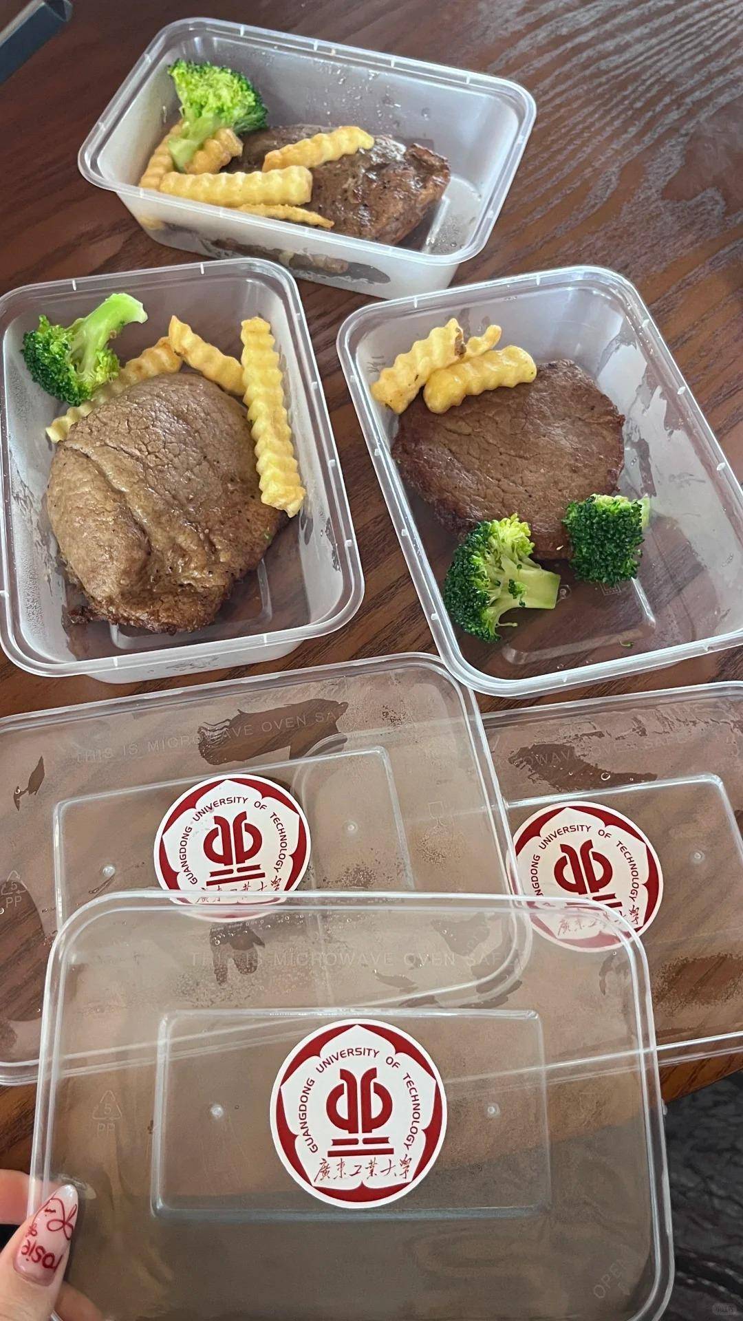该生展示的图片显示,每一份牛扒都是用塑料盒装好,里面除了牛扒还有薯条和西兰花。