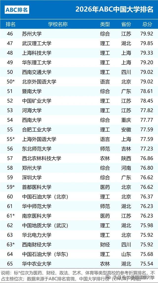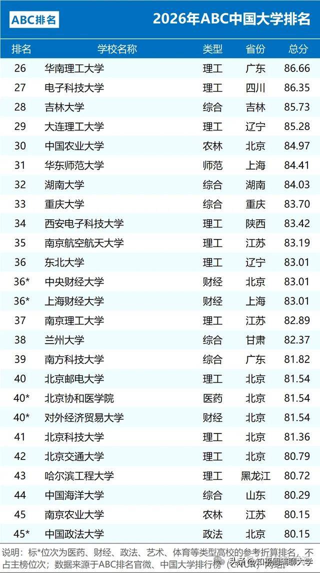 每年发布的大学排行榜,不仅是高等教育领域的风向标,更是观察中国社会资源流向、区域发展活力和国家战略布局的一扇窗口。当2026年ABC中国大学排名在1月4日如期发布,审视这份覆盖1241所院校的榜单时,我们发现,它描绘的远不止是各校实力的静态对比,更是一幅动态演变的图景——一些固化的秩序正在松动,传统的“江湖地位”面临挑战,而新的力量则在国家需求和地域经济的滋养下破土而出。排名的背后,是经费的博弈、政策的倾斜、学科的角力,以及一所大学在时代洪流中自我定位与变革勇气的综合体现。